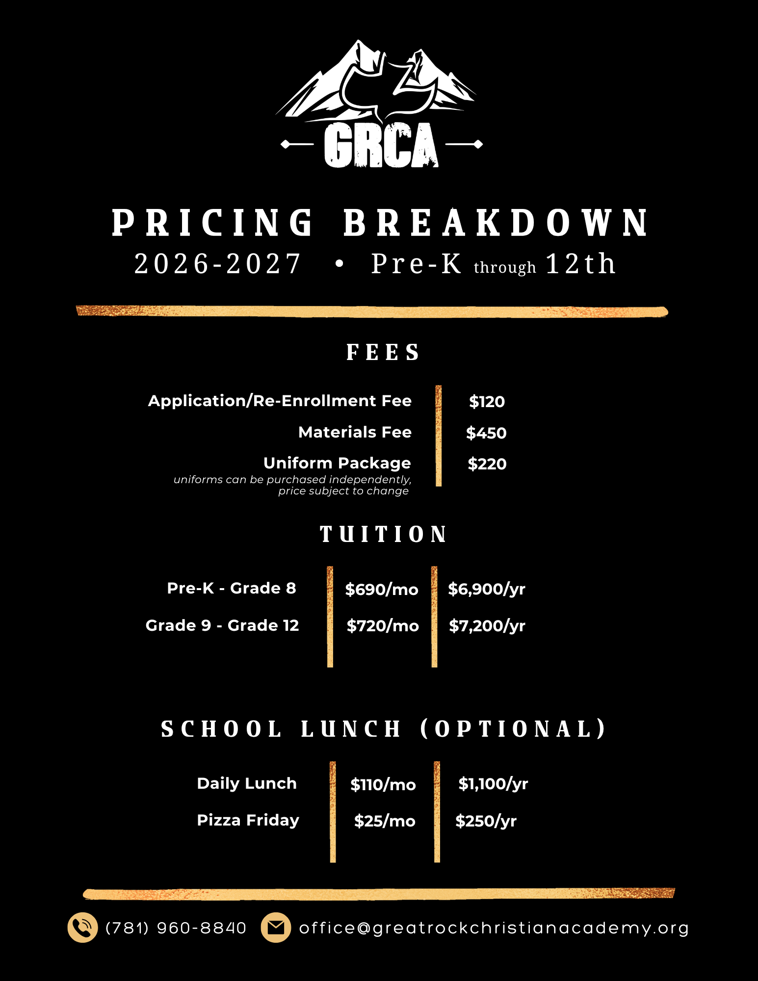 Please note: The following tuition and fees apply to the 2026-2027 school year only. Tuition and fees are subject to change for subsequent school years.